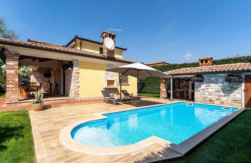 Villa Eva offers a swimming pool, sun loungers, an outdoor dining table, a covered summer kitchen with fireplace, a sauna, two bicycles and several parking spaces in its fully fenced and carefully maintained garden. The beach and shops are only a few minutes' walk away, while the water park is 8 km away. The town of Novigrad with many tourist facilities, restaurants, taverns, cafes, shops, souvenir shops, historical sights is only 4 km away.