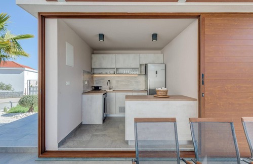 Welcome to this fantastic, modern home. Here you will look forward to your daily plunge into the heated pool, where you will be pampered by massage jets. Right next to it, take advantage of the fully equipped summer kitchen with grill to try out local dishes and specialties. All this happens in front of a wonderful scenery, here you will always enjoy a great view of the sea and the bay of Kastela.