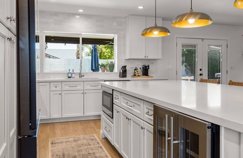 This beautifully renovated home is in immaculate condition and offers ample space for large groups to spread out across five spacious bedrooms on the same level. Blending contemporary minimalism with comfort, each bedroom is a tranquil retreat. Slide into crisp, cool sheets atop comfortable mattresses for a blissful night’s sleep. Take advantage of the direct patio access from the primary suite. Versatile sleep configurations are available to accommodate your whole group.