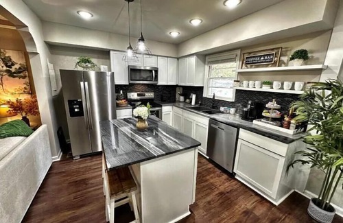 If you’re looking for a rental with a warm, inviting feel and convenient location - not to mention brand-new EVERYTHING, you’ve found it. This local gem invites you to kick your feet up and relax on the custom-built convertible patio with a cup of joe from the gourmet coffee bar. Although thoroughly updated, this lovely house retains its historical charm. We’ve added some state-of-the-art security features like motion-activated floodlights equipped with security cameras, Ring doorbell and camera, and smart keyless lock to make sure you feel safe while on vacation. Three sumptuous bedrooms promise restful nights with new premium mattresses and bedding, gorgeous rugs, and sophisticated decor that highlights a unique color theme in each room. You’ll appreciate touches like phone chargers and a full-size washer and dryer.