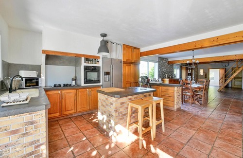 Welcome to this spacious house that offers you and your loved ones plenty of space and invites you to take in the beautiful rooms. The large kitchen with kitchen island is the ideal place to wield the wooden spoons together and conjure up delicious dishes. Your children, meanwhile, can draw pictures at the dining table or play games before you all go out together to dine on the terrace or take a dip in the pool. As soon as you arrive, you will appreciate the parking space, the beautifully landscaped garden with trees, the boules court and the swing, if you have children.
