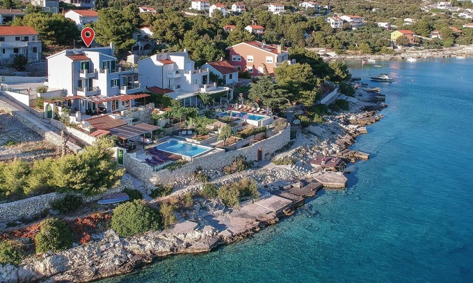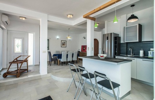 Spend your vacation in this beautiful cottage, it is located on a plot directly on the water in the small village of Sevid. The spacious and comfortable interiors are spread over three floors, with access to the second floor from the street level. From the second floor an interior staircase leads to the ground floor and the second floor is accessible via an exterior staircase. The highlight is certainly a beautiful garden with a swimming pool and a small, typical Dalmatian konoba, ideal for social evenings barbecuing. Also enjoy the sun and refresh yourself in the pool You can also visit the beautiful cities of Trogir and Split, which will enchant you with their historical sights and a Mediterranean atmosphere.
