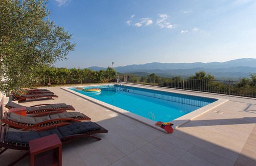 On a small hill there is this holiday house with pool, surrounded by fields and vineyards. Dawn, sunsets overlooking the Mosor and Kamenica, a long walk or bike ride along the Wine Road are just some of the charms that await you. In the garden by the gazebo is located swimming pool equipped with hydro massage jets and a nice sun deck. There is also a playground for children, and an auxiliary building next to the house where there is an old Dalmatian tavern with a grill. This house in a secluded place is ideal for a family respite from everyday city noise. Trilj and its surroundings are rich in natural beauty, but also archaeological sites, most notably Tilirium, Roman legionary camp, after which the Trilj was named.