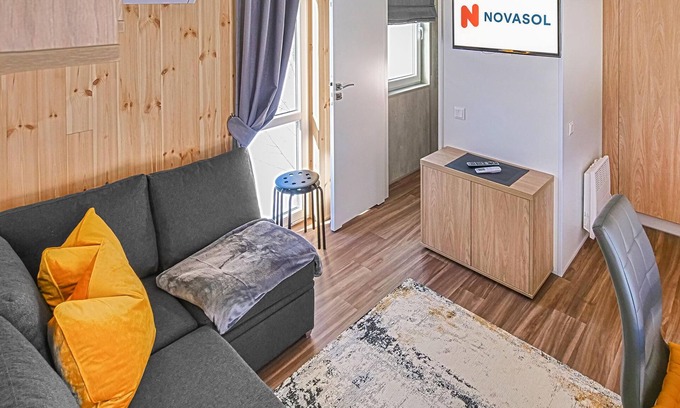 This pretty Tiny House with its cosy living area with sofa bed (1.20x1.90 m), dining area and well-equipped kitchenette invites you to linger. In the separate bedroom with box-spring bed you will sleep and dream wonderfully. The Tiny House also has its own bathroom with shower/WC.