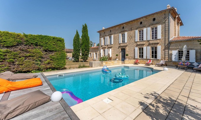 Enjoy your time out near Bordeaux in this elegant manor house with pool and large park.