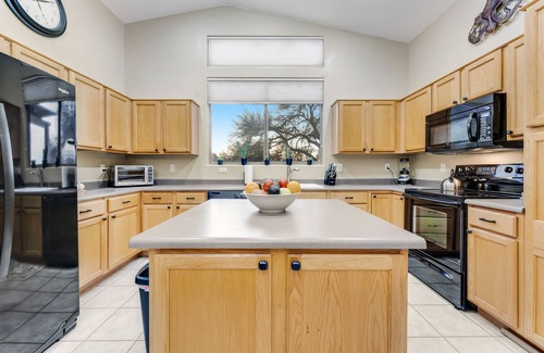 When everyone gathers inside after watching stunning sunsets, the interior will greet you with central air-conditioning, tile flooring throughout, and high-end furnishings to kick back on after a day of fun. The full kitchen will be more than ready to assist with whipping up tasty meals and movie snacks with ease, equipped with all of the major appliances, a large island, and plenty of cookware. When it comes to entertainment, fast WiFi and streaming capabilities await on each smart TV (streaming with your own accounts) to keep you connected and up to date with your favorite shows.
