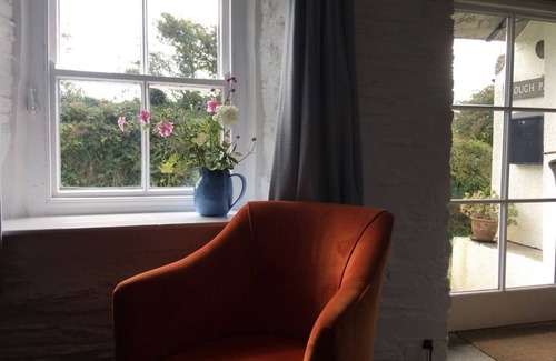 This characterful 18th-century stone cottage has been our summer home and writing retreat for 25 years. Located in an Area of Outstanding Natural Beauty, it is surrounded by fields and looks down a delightful valley towards the sea. it enjoys direct access to one of the most dramatic stretches of the long-distance coast path and to secret, unspoilt beaches.