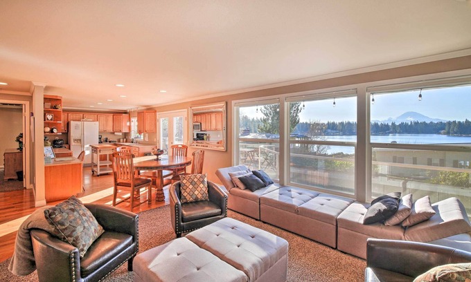 Relax and connect with nature when you stay at this serene Kent vacation rental! Breathtaking views of Mount Rainier and the on-site Lake Morton serve as the backdrop to this 4-bedroom, 2.5-bath house. Take the canoes out on the water, spend some time on the spacious deck, or soak in the incredible views from the comfort of the home’s 2nd-floor living room! Or, take advantage of the location and visit some area attractions like historic Black Diamond or Downtown Auburn during your stay!