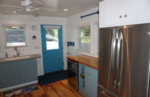 This home has been recently updated with fun and unique lake themed design elements including a paddle railing and a wicked cool rope & boat cleat stairway; includes a modern, fully stocked kitchen, a comfortable living room with an American Leather Sofa that has a queen pull out mattress; one bath, two bedrooms, one with a king sized bed and one with two twin XL beds; washer and dryer, AC, WiFi, Smart TV, Wii, board games, bath and beach towels, linens and fluffy pillows and a pack-n-play.