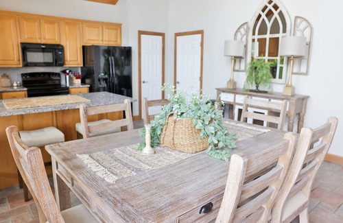 * Just off the kitchen is a nice dining area with a new table and 6 chairs and also 3 bar stools that cozy up to the granite bar top for extra seating for the whole family. The living room has all hardwood floors and a beautiful floor to ceiling stacked rock fireplace and comes furnished with a nice couch and loveseat, 2 extra upholstered chairs, coffee and 2 end tables and a nice mounted flat screen Smart Tv.