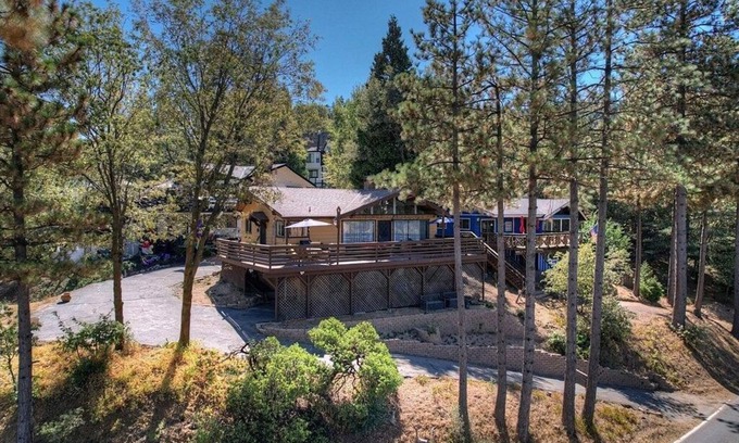 Located in the heart of Crestline, just a short drive from Big Bear Lake, this cabin offers easy access to nearby attractions and activities. Explore the scenic 2.5-mile trail around Lake Gregory, perfect for post-wedding strolls or group hikes. For those looking to celebrate further, enjoy local shops and dining options within minutes, as well as convenient public transportation to explore neighboring villages. After a day of adventure, return to your private oasis and bask in the tranquility of the starlit Southern California sky from your spacious deck, making memories that will last a lifetime.