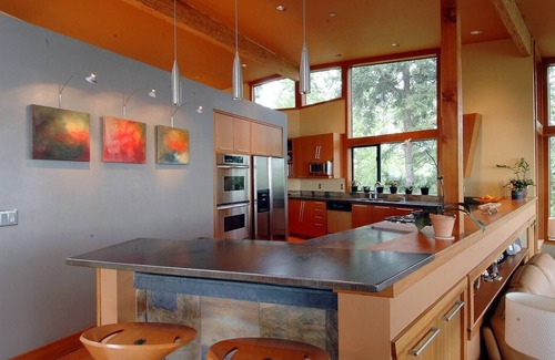 A short 10 minute walk to Juanita Village gets you to a plethora of great restaurants, including the perpetually outstanding (albeit expensive) Cafe Juanita. During the spring through fall, our local farmer's market is held on Fridays just at the bottom of our hill, at the popular Juanita Beach Park. Just ten minutes drive is the vibrant downtown core of Kirkland, which has art, events, fantastic restaurants, nightlife and an idyllic waterfront park and marina. Juanita Beach park is a 10 minute walk and great for kids with a playground, volleyball, sandy beach, bathroom facilities and covered eating areas. Our neighborhood waterfront beach is even closer and has picnic tables, a fire-pit and parking; a great place to let kids run around or roast marshmallows.