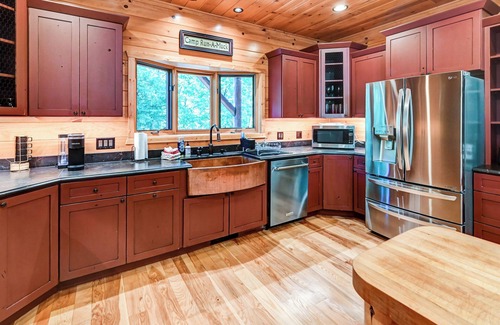 * 3 fully equipped kitchens! 10+person custom table off main kitchen, fully equipped wet bar. Enjoy all the comforts of home including plastic wrap, foil, dish soap and various condiments.
