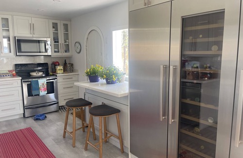 Third bedroom suite has seperate private entrance. Fourth bedroom is in a 10 x10 modern air conditioned bunkie within a few steps of the main house The renovated kitchen boasts a Liebherr fridge/freezer/wine cooler and nespresso and European washer/dryer.