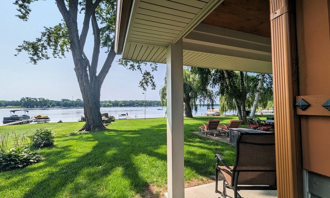 Welcome to our family-friendly, 3-bedroom, 2 full-bath, fully updated lakefront home in Brooklyn, MI. Experience the charm of a large yard and breathtaking lake views year-round, coupled with modern amenities. From a cozy gas fireplace to a high-tech entertainment system and a well-equipped kitchen, we offer a tranquil yet engaging stay. Enjoy private patio views or gather around the fire pit. With the capacity to comfortably accommodate 10+ guests (1 queen, 2 full, and 4 twin beds) , our location is just 4 minutes from downtown Brooklyn, 10 minutes from MIS (Michigan International Speedway), and a short 24-minute drive from Jackson. Conveniently situated a brief walk from the boat launch and park, you can even bring your boat and use our dock.