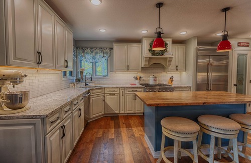 • Two fireplaces, ceiling fans, and a fully equipped chef’s kitchen