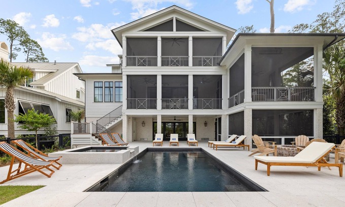 Stunning Lowcountry Home with Private Pool/Hot Tub and Entertainment Room is located in Palmetto Bluff. Stunning Lowcountry Home with Private Pool/Hot Tub and Entertainment Room provides accommodation, featuring Parking, Private Pool, Fireplace/Heating, among other amenities. This House features Parking, Private Pool, Fireplace/Heating, to make your stay a comfortable one.