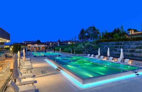 This prestigious estate offers additional rooms for guests (total of 134 rooms), perfect for a destination wedding, and six different complexes with SPA, 7 outdoor swimming pools, wellness programs, three restaurants (a poolside one, a trattoria and a gourmet restaurant), lounge and pool bars, and 12 meeting rooms for a maximum of 280 guests, wine and oil tastings, its own classical music festival (summer), gym, tennis court, squash, basket and paddle court, 8-hole putting green, driving range.