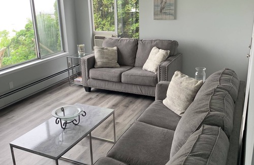 Newly renovated apartment overlooking the Manitowoc Marina and Lake Michigan. Watch the car ferry cruise in on the large deck with unobstructed views. All new appliances, bathroom fixtures and furniture. Only a .4 mile walk to downtown, restaurants, bars & venues. Two car garage available for parking.