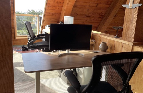 For people working remotely, the house is equipped with the fastest internet on this part of the coast (Further Reach Business Platinum, 110 Mbps upload/download, 60 Mbps minimum) and a cell phone booster that provides the best reception for miles around. The upstairs boasts two desks (one is a brand-new, sit-stand hydraulic desk), both equipped with high-quality monitors and desk chairs, as well as a multifunction printer. (Guests would need to provide their own keyboard/trackpads and adaptors for the HDMI cables.)