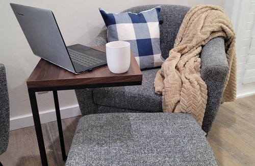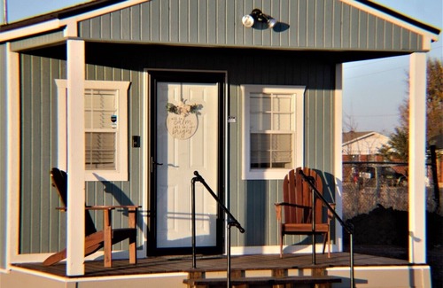 The living space is perfect for relaxation or work! We have an adjustable 50" Roku Smart TV with Guest Mode perfect for catching up on your favorite programs! High speed internet is available everywhere on the property! Rest easy on the deep set comfy chairs with ottaman! Enjoy the beautiful farmhouse furniture crafted by local artisan, A.A. Lynn Furnishings. You'll sleep soundly in our high quality queen size bed with warm, comfortable, and breathable bedding! Each window is fitting with blinds and blackout curtains for our light sensitive sleepers!