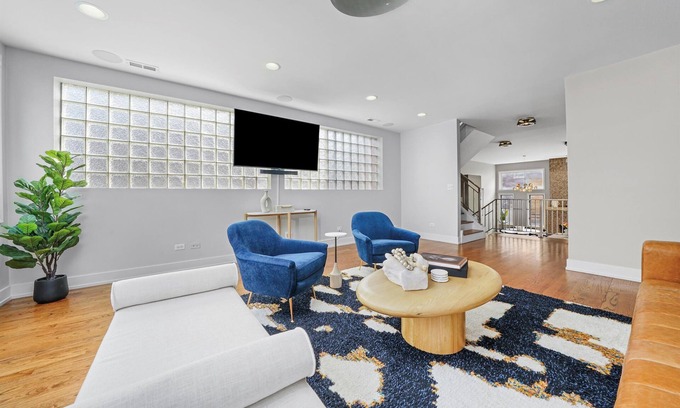 3500 square feet of luxury, minutes to downtown, 7-minute walk to blue line station at Chicago Ave. Close to everywhere you want to visit: great restaurants in Fulton Market/West Randolph St, Bucktown/Wicker Park, The United Center - all a 10 minute walk or short RideShare.