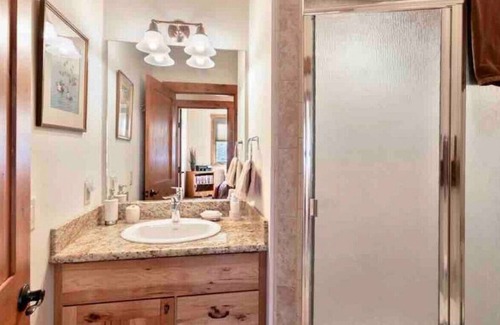 Enjoy the awe-inspiring beauty of the mountains as you gather to watch TV or relax by the fireplace. There’s plenty of room for everyone as you whip up a fantastic meal in the fully appointed chef’s kitchen (stocked with all the necessities). The ambiance is perfect as you dine together at the family table that seats six to ten people. An extra leaf and highchair are located in the hall closet.