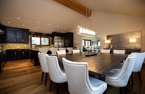 Every detail of this home has been crafted to enhance your special occasion. The expansive Chef's kitchen boasts high-end appliances including a Sub Zero refrigerator, gas range, and wine fridge, perfect for catering an elegant reception. With four spacious bedrooms, each equipped with en-suite baths, your guests will enjoy comfort and privacy. The open concept great room provides ample space for gatherings, featuring vaulted ceilings, large windows showcasing stunning mountain views, and seating for 12. After celebrating, unwind in the private back deck hot tub or take advantage of the additional living areas to relax and connect with loved ones.