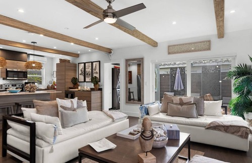 Extremely modern and stylish beach house in Hollywood Beach. The house comes fully equipped with a modern Italian kitchen with all appliances, utensils and needs for cooking and dining. The house has 2 big comfy couches with plenty of storage and 55" Smart TV with Netflix, Amazon Prime TV and YouTube (no logins provided). Master bedroom has an on suite bathroom and king size bed. Front room is a 2nd bedroom with a couch and the living room couches also expand into award winning full size beds.