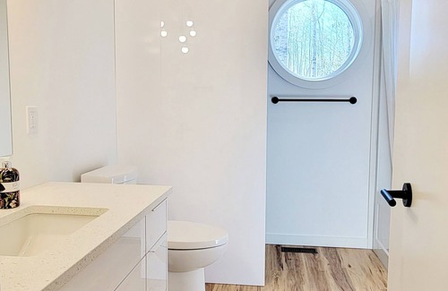 Glasshaus is the perfect getaway and a fabulous location to launch your cottage country staycation or adventures from. Natural light-drenched and cozy, glasshaus features 9-foot ceilings, a linear electric fireplace and floor-to-ceiling windows with unobstructed nature views. The homes design is inspired by nature therapy, each room connecting you with the outdoors.