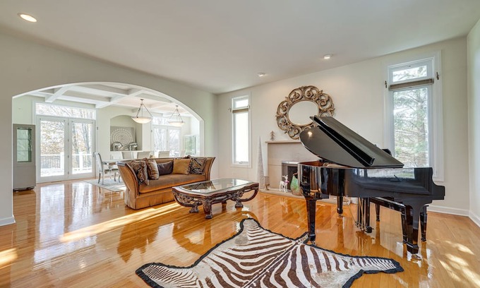 Spend your next Illinois retreat staying in style at this incredible Mokena vacation rental! With a beautiful expansive interior, spacious furnished deck, and private outdoor pool, this 4-bedroom, 6.5-bath house is perfect for accommodating the entire family during your stay. Take advantage of the home’s private gym, media room, or basement foosball table. Or, check out nearby Harrah’s Casino, tee off at some top-rated golf courses, or visit Joliet’s Rialto Square Theatre while in town!