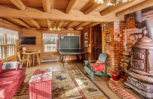 Guests are often captivated by the charming façade that welcomes them to Robin's Nest upon arrival. Surrounded by trees, Robin's Nest also enjoys a spacious yard and extended deck that winds around the property and sits securely in front of its log cabin exterior. Robin's Nest includes separate doors and stairs that lead from the ground level to the wrap-around deck. Large windows make it evident even from the outside that Robin's Nest is a property with plenty of natural light flow available during the daylight hours. Patio furniture and a picnic table dot the deck at Robin's Nest, welcoming guests to enjoy as much time as possible in the fresh air soaking up the sights and relaxing.