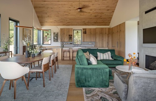 Aura Haus is a beautiful 4-bedroom home with a modern, well-designed space for you to unplug and spend quality time with family or friends. Tucked away on a historic homestead, the property boasts stunning panoramic views of the surrounding nature. Despite its peaceful setting, the home is conveniently close to the town of Telluride and the ski area.