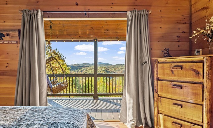 STUNNING mountain views facing sunset, hot tub, 3 king bedrooms + attached baths is located in Mineral Bluff. STUNNING mountain views facing sunset, hot tub, 3 king bedrooms + attached baths provides accommodation, featuring Barbecue/Outdoor Cooking, Child Friendly, TV, among other amenities. This Cabin features Barbecue/Outdoor Cooking, Child Friendly, TV, to make your stay a comfortable one.