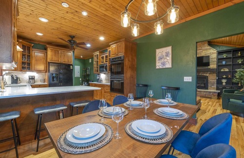 This newly renovated cabin can accommodate up to 13 guests! Get your competitive spirit on in the game room, lounge in the movie theater or hot tub, or enjoy the many stunning mountain views. Conveniently located near many hiking trails!