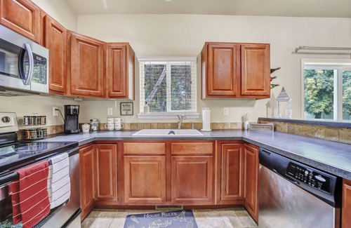 Plenty of room for the whole family (or two) in this spacious 4 bed, 3 bath home. This is a split level home layout featuring 3 bedrooms and 2 full bathrooms downstairs, along with the kitchen, living room, dining room, and laundry room. Upstairs you will find a bonus room with a pullout couch and a private bedroom with 2 twin beds and an attached full bathroom. Attached 2 car parking garage is exclusively for guest use as is private fenced large backyard with patio and BBQ grill.