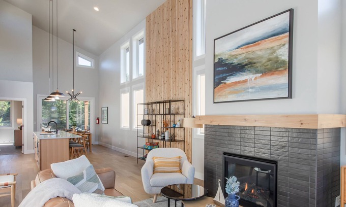 Stunning new modern design, 5 min walk to town, dog friendly, no pet fees, EV Charger is located in Nehalem. Stunning new modern design, 5 min walk to town, dog friendly, no pet fees, EV Charger provides accommodation, featuring Fireplace/Heating, Entertainment, Laundry, among other amenities. This House features Fireplace/Heating, Entertainment, Laundry, to make your stay a comfortable one.