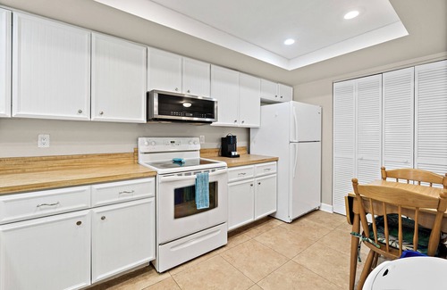 The complex itself is packed with amenities to enhance your stay, including a heated swimming pool, shuffleboard court, outdoor gas grill, and a car wash area. For beachgoers, we provide two beach chairs, an umbrella, and beach towels so you can fully enjoy the sun and surf.