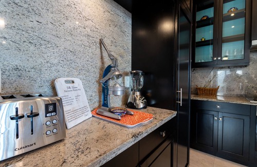 The gourmet kitchen with high end appliances, a dishwasher, granite counter tops, wine fridge, garburator, along with a fully stocked kitchen allows you to prepare your favorite meal. For complete relaxation, Villa Karina also offers a high end chef for in house meals to give you more time to spend with friends and family upon request.