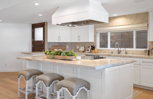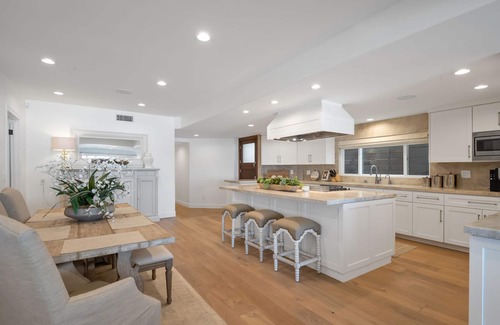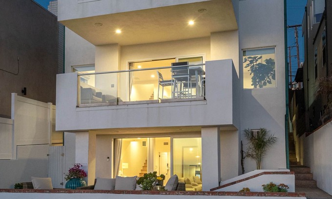 Stunning, oceanfront, fully remodeled townhouse on The Strand - a perfect beach vacation! Totally renovated in 2020 with a warm, contemporary beach vibe. Feel the sunshine and hear the waves from this majestic 2 bedroom, 3.5 bathroom home. Upon arrival, drop your bags and relax. The main level features a gourmet chef's kitchen with high end appliances, dining room, living room, patio, two spacious bedrooms with en-suite bathrooms, and a powder room. Sit back and enjoy a warm fire while watching world class surfing all day long from the open and inviting living room. Grill, entertain, and relax on your private patio with a birds eye view of all The Strand has to offer. Retreat downstairs to a second living room with air hockey table, large TV, plenty of seating with pullouts to sleep 4. Enjoy the spa worthy master bathroom with jetted tub, extra large shower, and a bidet. Slide open the doors to your Strand front patio with views from Malibu to Catalina to Palos Verdes and beyond! The beach chairs and sand toys won't require much schlepping from this ocean front, resort like home. Park the car for good, you can walk or bike to just about everything. Stroll over to North Manhattan for top notch dining and shopping. Downtown Manhattan Beach is just a quick bike ride away. Easy access to freeways, LAX, parks, beaches, and the lifestyle you've been dreaming about.