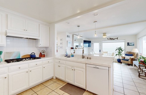 With a stunning oceanfront setting directly on the beach, this 4BR/2BA (+ den) is outfitted with all-new furniture, bedding, and kitchen gadgets. It's the perfect haven to enjoy the lifestyle of sun-drenched Ventura! Take in the sunrise and sunset from two decks or the comfort of the indoors, and keep an eye out for dolphins, seals, whales, and nearby Rincon Island from the oceanfront patio. Watch waves break from most rooms, and enjoy two miles of pristine beach right from your vacation rental.