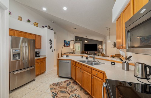 This exceptional 4/3 Orange Tree vacation home has all the comforts you'd expect to find in the perfect paradise retreat. A brilliant combination of subtle decor and whimsical features, this home is certain to be a hit with every member of your traveling party. Everyone will find a space that's perfectly suited to their taste and needs, so they can enjoy their vacation their way. When it's time to convene as a family, you've got the perfect spaces for that, too! Tastefully decorated with just enough color to dazzle and more comforts than "home" usually allows! Clean lines accentuate the smooth, sophisticated feel of this Orange Tree gem. Spread across one level, you'll find four spacious bedrooms and three bathrooms as well as an open common area with plush living room, fully-equipped kitchen, formal dining room, and breakfast nook. The pool deck is ready and waiting with comfortable furniture for relaxing, Outdoor TV and newly resurfaced pool, sun-loungers for the sun worshipers and completely fenced off pool for added security for families with small children.