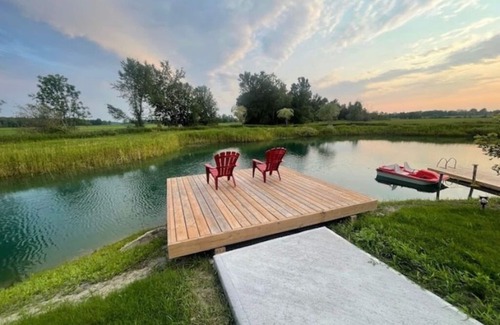 Canoeing: Experience the beauty of nature by canoeing on the serene waters near Severn, Ontario. The Stunning Private Cottage with beautiful Pond On 20 Acre Property provides easy access to picturesque waterways perfect for a romantic day out.