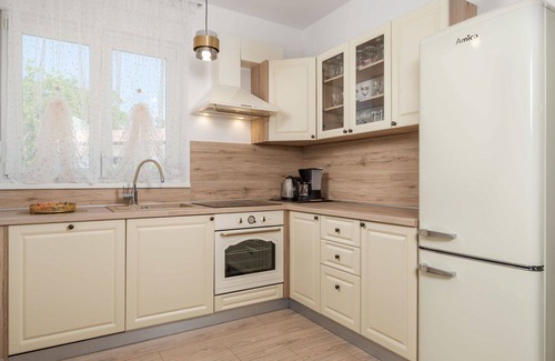Embrace the convenience of Villa Palma (KRK148), which offers a range of amenities to elevate your vacation rental experience. Stay connected with internet access, ensuring seamless communication and entertainment. Indulge in the comfort of air conditioning, providing a respite from the warmth. Effortlessly maintain your laundry needs with the on-site washing machine. Rest assured, ample parking is available for up to three cars, eliminating any concerns about finding a spot. Nearby, you'll find a shop located just 100 meters away, catering to your daily necessities, while a ferry terminal is conveniently situated 3 kilometers from the property.