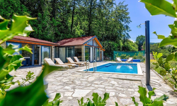 Stunning private villa for 12 guests with A/C, hot tub, private pool, WIFI, TV and terrace is located in Senj. Stunning private villa for 12 guests with A/C, hot tub, private pool, WIFI, TV and terrace provides accommodation, featuring Designated Smoking Area, Balcony/Terrace, Fireplace/Heating, among other amenities. This House features Designated Smoking Area, Balcony/Terrace, Fireplace/Heating, to make your stay a comfortable one.