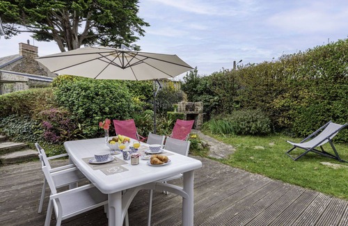 Immerse yourself in the tranquility of this vacation rental's private garden spanning 650 m2, surrounded by fencing and adorned with a beautiful lawn.