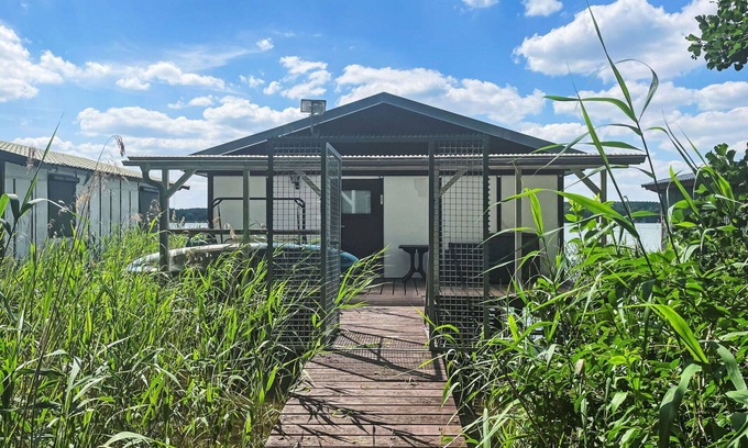 The Timber house "Bootshaus auf dem See" is a detached vacation rental located in Neuruppin, Germany. It offers a peaceful and scenic setting, situated just 5 meters from the edge of the forest and on the lake, surrounded by the countryside. While conveniently located 500 meters from the center of Lindow, the property provides a private, natural state environment. Parking is available at the house, just 10 meters away.