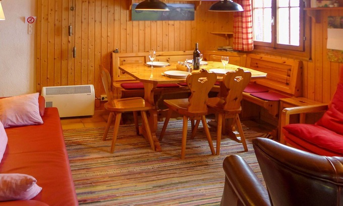 The chalet features wooden furniture furnishings, providing a warm and inviting atmosphere. Please note that this is a non-smoking property, and reserved parking is available at a distance of 50 meters.