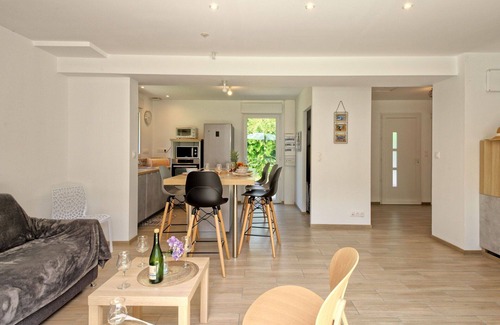 Kermorvan is a single-family house constructed in 2022, offering a delightful holiday rental experience in Plougrescant, France. With a spacious yard measuring 1,200 square meters and a charming garden featuring lush lawns and a wildlife-friendly design, the property promises a tranquil escape. Convenient parking for up to two cars is available on the premises, ensuring a hassle-free stay.