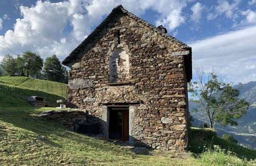 This vacation rental, Rustico Tecc du Martin, is a large, child-friendly single-family house situated in Acquarossa, Switzerland. The property boasts a private natural state property of 400 m2 with a meadow and garden furniture. It offers amenities such as a yard, internet WiFi, and on-premises parking. Enjoy the tranquility of this countryside retreat nestled 100 m from the edge of the forest and accessible via a 100 m long bumpy motor access road.